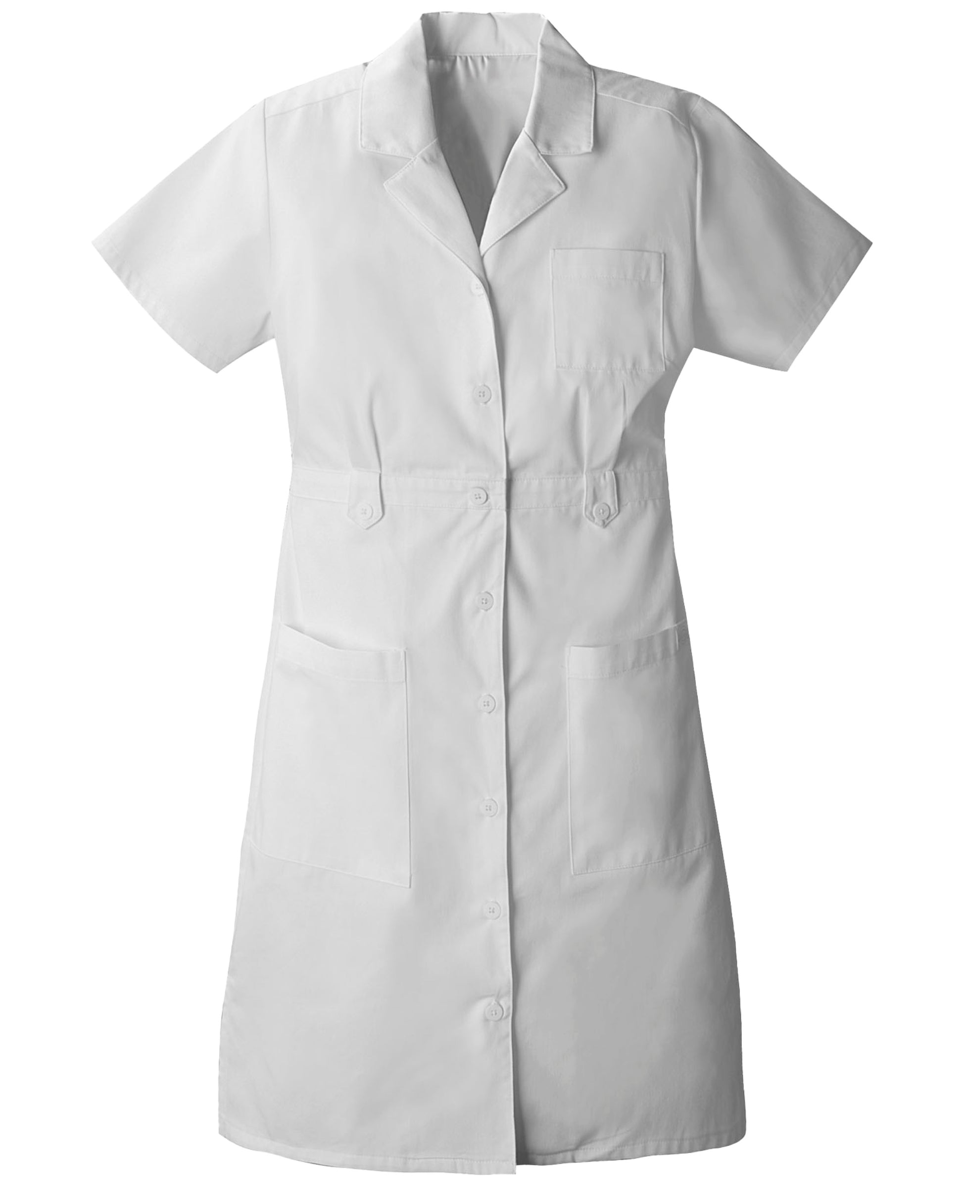 A Modern Classic fit button front dress features a notched lapel, a chest pocket, side vents and two patch pockets. Also featured are a front waistband with button tabs, bust darts and back elastic for shaping. Center back length: 38".